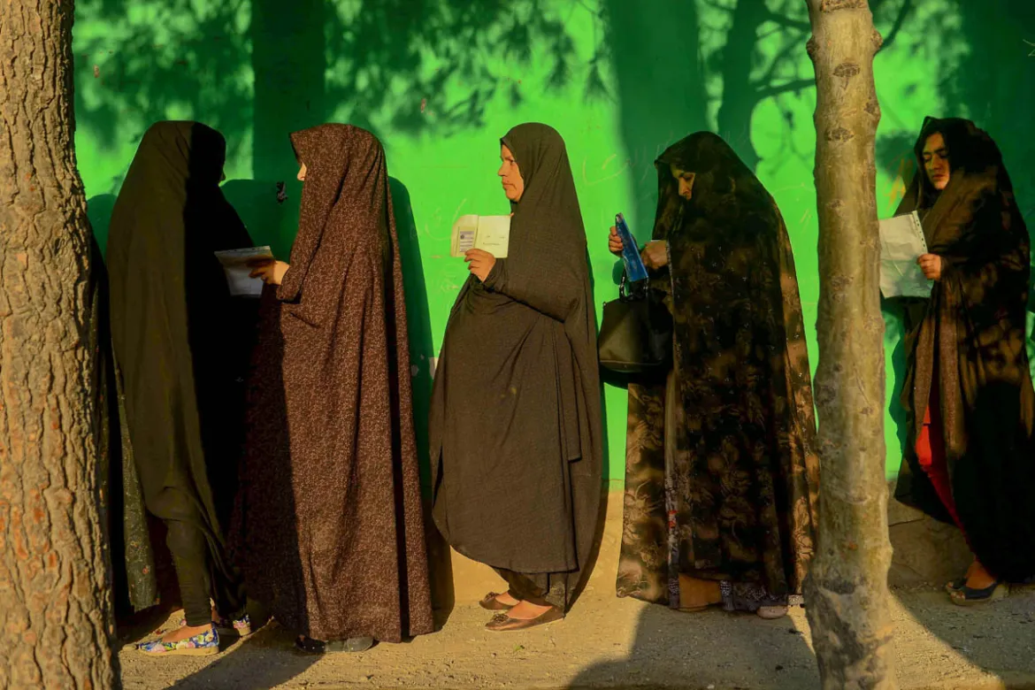 په هرات ولایت کې ښځې د رایې اچونې لپاره په قطار کې ولاړې دي. هوشنگ هاشمي AFP